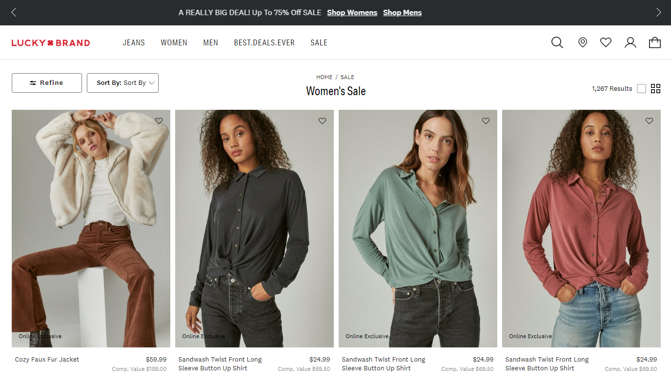 Get up to 70% off sale and 40% off Denim, Use code LUCKYSTYLE for another 20% off! Sales might be ending soon, so hurry on to lucky brand