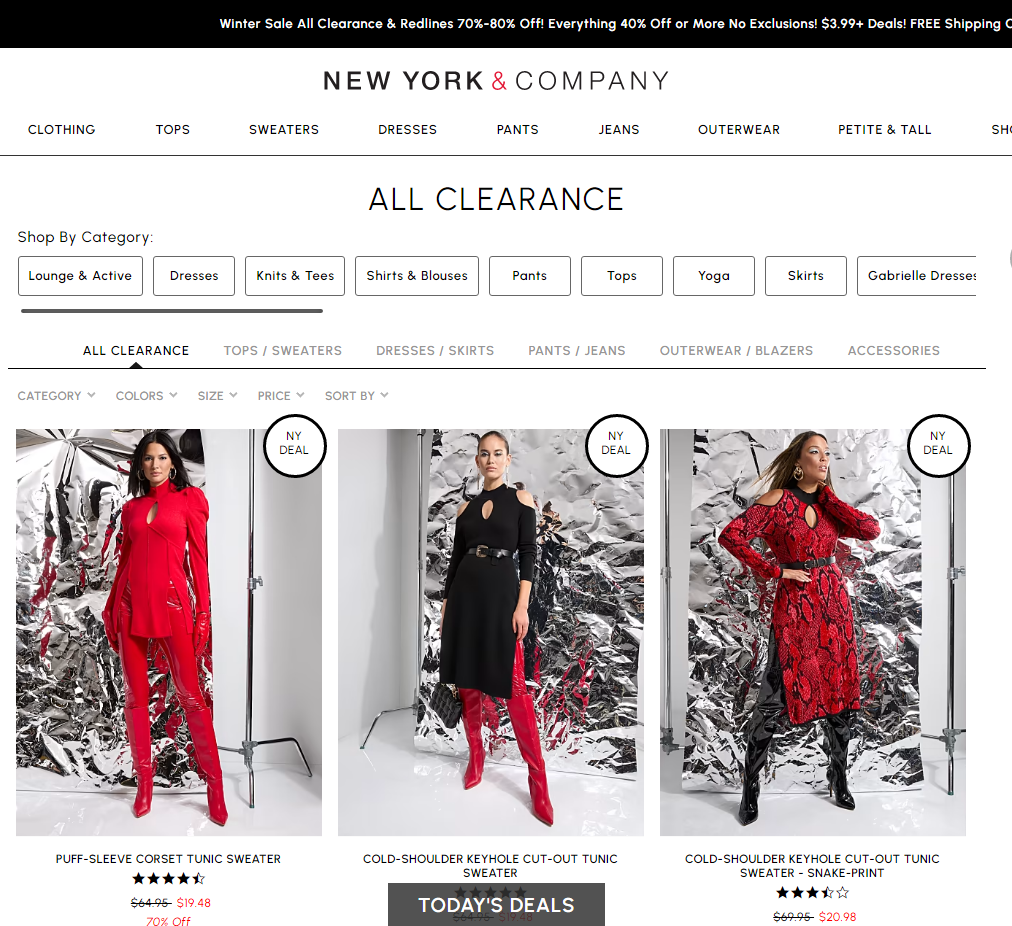 New York & Company Sale. 70-80% off Clearance. 40-60% off everything else